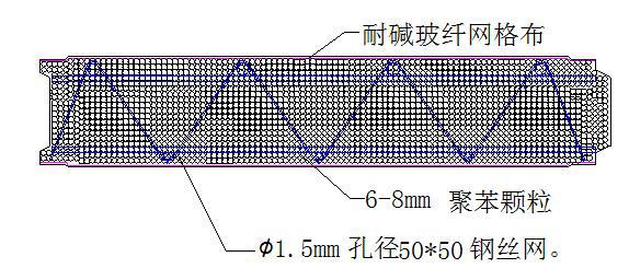 內隔墻板應采用絲徑為1.3mm~1.6mm,網格為50mm×50mm或25mm×25mm的鋼網;外墻板應采用絲徑為1.7mm~3.0mm,網格為50mm×50mm或25mm×25mm的鋼網;其質量應符合QB/T 3897的規定。
