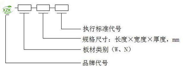墻板的型號標記按品牌代號、板材種類、規格尺寸(長×寬×厚)、執行標準號順序組成。